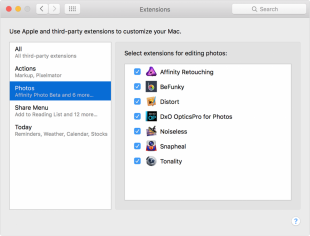 Affinity Retouchingは、Affinity Photoのアイコンが似ていますが、写真の機能拡張には未対応なので、別のMacアプリかもしれません。