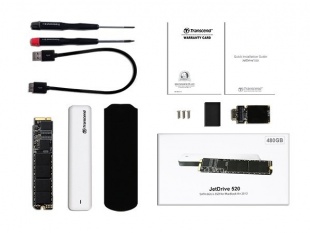 JetDrive SSDは、誰にでも簡単にアップグレードが行えるよう、データコピー用のケーブルから精密ドライバーまで、オールインワンパッケージキットとして販売されています。