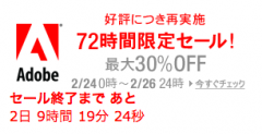 Amazon.co.jpが、2011年2月24日(木)午前0時00分から2011年2月26日(土)午後11時59分(日本時間)の期間中、掲載されているアドビ システムズ製品を購入すると、表示価格からさらにその場で最大30%OFF!になる「72時間限定セール! アドビ商品、その場で最大30%OFF