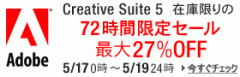 Amazon.co.jpが、2011年5月17日(火)午前0時00分から2011年5月19日(木)午後11時59分(日本時間)の期間中、掲載されているアドビ システムズ製品を購入すると、表示価格からさらにその場で最大27%OFF!になる「Creative Suite 5 在庫限りの72時間限定セール