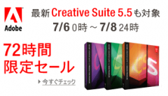 Amazon.co.jpが、2011年7月06日(水)午前0時00分から2011年7月08日(金)午後11時59分(日本時間)の期間中、掲載されているアドビ システムズ製品を購入すると、表示価格からさらにその場で最大24%OFF!になる「72時間限定セール