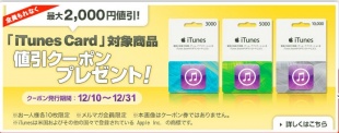サークルKサンクス、メルマガ会員限定で「iTunes Card」が最大2000円引きになる「iTunes Card対象商品値引クーポンプレゼント!」を開始