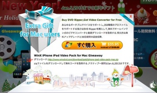 Digiarty Softwareが、Mac用DVDリッピングソフトウェア「WinX iPhone Ripper for Mac」と、Mac用iPhoneビデオコンバータ「iPhone Converter for Mac」を期間限定で無償配布する「2013新年ギフト」を開催しています。