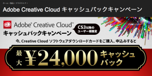 アドビシステムズが、CS3以降ユーザー限定で、Adobe Creative Cloud年間プラン購入で最大24,000円キャッシュバックする「Adobe Creative Cloud キャッシュバックキャンペーン」を開始しています。
