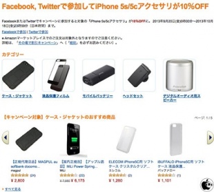 Amazon、Facebook、Twitterで参加してiPhone 5s/5cアクセサリが10%OFFになるキャンペーンを実施