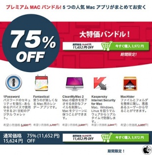 と一緒に6つのMacソフトをセットにした「プレミアムMACバンドル7」を4,900円で期間限定販売を開始しています。