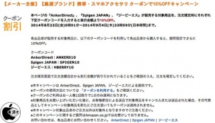 Amazon、AnkerDirect、Spigen JAPAN、ジービーエスの対象商品を10%オフで購入出来る「クーポンで10%OFFキャンペーン」を開催