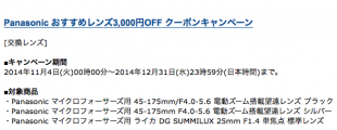 」購入時に、クーポンコード入力で3,000円オフになる「Panasonic おすすめレンズ3,000円OFF クーポンキャンペーン