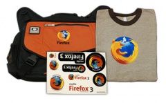キャンペーンページを自分のブックマークに追加した方の中から抽選で3名に、Firefoxノベルティセット(メッセンジャーバッグ、Tシャツなどのノベルティ詰め合わせセット)が当たるそうです。