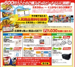 ローソンが、2009年2月3日〜3月1日の期間中、600円ごとの購入でもらえるスピードくじを集めて応募すると、抽選で100名に、ドラゴンボール刻印入りiPod nano (4th generation)などが当たる「元気になろーソン!フェア」を開催しています。
