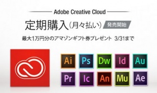 Amazon、Adobe Creative Cloud 定期購入で最大1万円分のギフト券プレゼントキャンペーンを実施
