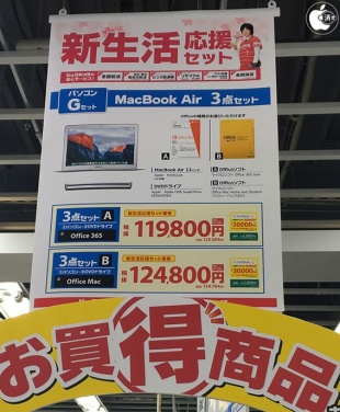 ビックカメラ、MacBook Air (13-inch, Early 2015)とOffice同時購入で1万5千円引きになる「新生活応援セット」を販売中