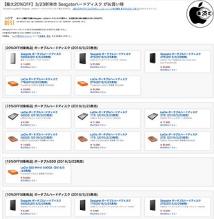 Seagate・LaCieハードディスクを買うと、注文確定時に表示金額から5%〜20%オフになります。