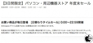 Amazon.co.jpが、3日間限定でパソコンストア商品を特価販売する「パソコン・周辺機器ストア 年度末セール