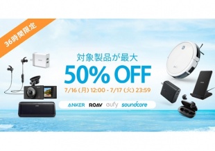 アンカー・ジャパン、Amazonにて、最大50%オフセール「Ankerのモバイルグッズやオーディオ製品、掃除機などがお買い得」を開催の