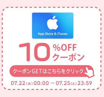 5,000円以上の購入でApp Store & iTunes ギフトカードが10%オフになる、お得なクーポンを配布しています。