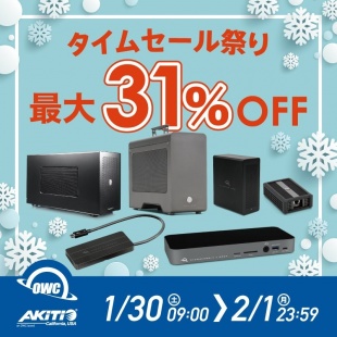 2021年01月31日(日) プロモーション#OWC#Amazon#特価 Other World Computing、Amazonにて、最大31%オフになる「タイムセール祭り」を開催中(2/1まで) ※本サイトは、アフィリエイト広告および広告による収益を得て運営しています。購入により売上の一部が本サイトに還元されることがあります。 Other World Computingが、Amazonにて、最大31%オフになる「タイムセール祭り」を開催しています。 セール期間は、2021年2月1日23時59分までとなります。