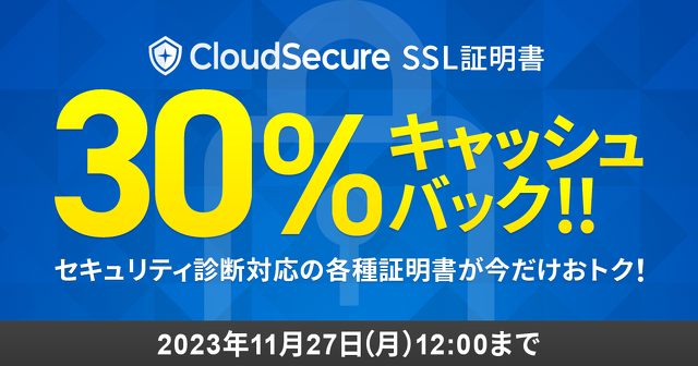 Xserver「クラウドセキュア SSL30%キャッシュバックキャンペーン」を実施(11/27まで)