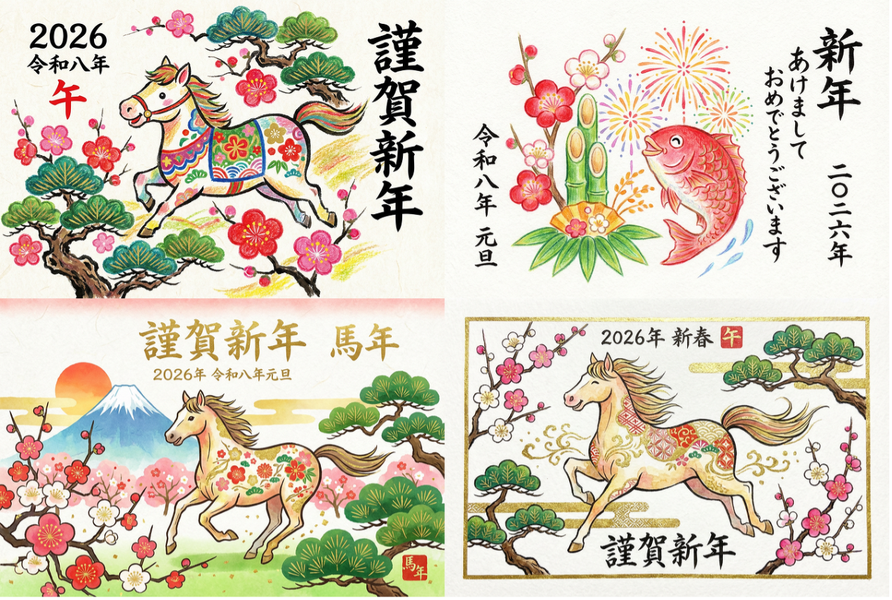 AIを活用した新年向けテンプレートは、SNS投稿や年賀状、祝福動画など、幅広いシーンで活用可能。
