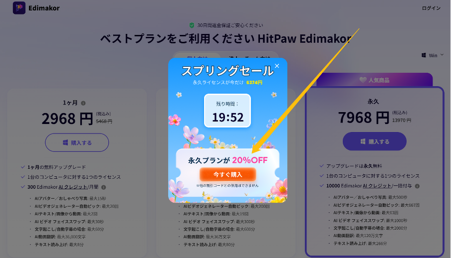ただ、HitPaw Edimakorの春セールでは、限定製品永久版の20%OFF、一度整理して見ておきたいところです。