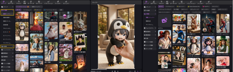 また、AI動画編集ソフトEdimakorによっては、あらかじめAIテンプレートが用意されており、クリック操作だけで動画を作成できるものもあります。