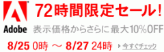 Amazon.co.jpが、2010年8月25日(水)午前0時00分から2010年8月27日(金)午後11時59分(日本時間)の期間中、掲載されているアドビ システムズ製品を購入すると、表示価格からさらにその場で最大10%OFF!になる「72時間限定セール! アドビ商品、その場で最大10%OFF
