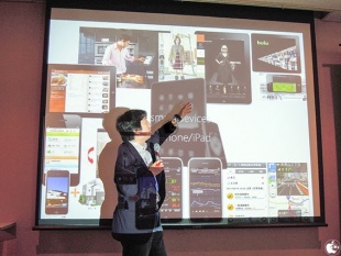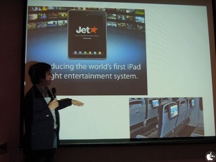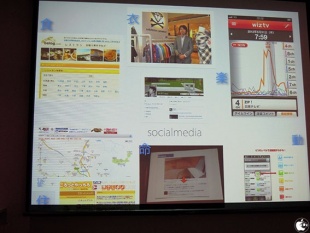 部品としてのiPhone/iPadを使用する事例が増えてきていて、Jetstarが、機内エンターテイメントシステムとして、iPadを導入したり、おもちゃのiOS化など、柔軟に拡張されるという今までとは違った市場が生まれていると説明した。