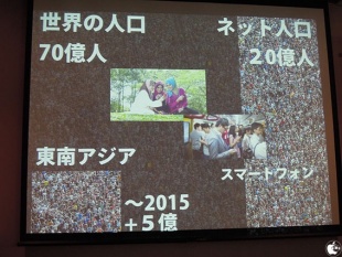 Googleは、世界人口70億人のうち20億人がインターネットを利用していて、スマートデバイスの登場によって東南アジアで5億人のインターネット人口が増えると予測していると説明した。そうした中で中国市場のスマートデバイスシェアの拡大がさらに進むと語った。