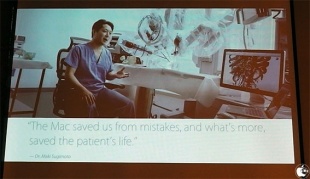 Appleの「Thirty Years of Mac」で紹介された文章は「手術を中から外に可視化」と表現しているが、8時期間にもわたるインタビューを、1行で紹介したもので、まさにこれがプレゼンテーションだと話し、写真は4,000枚撮影した写真の中から選ばれた1枚だと話した。
