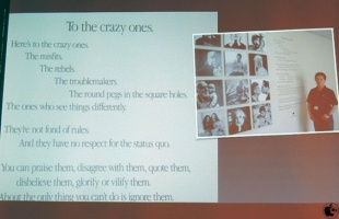 留学していた2008年に、Apple本社の医療ページデザインの仕事を行った時があり、その時、Think differentキャンペーンが飾ってあり「人類を進化し、その人々にツールを提供する」と書かれていたと説明した。