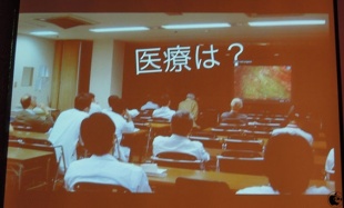プレゼンテーションで世界が変わるかと言われるが、医療の現場では、文字ばっかりで、読んでるだけでの古いプレゼンテーションが行われていて、何も変わっていないと説明した。