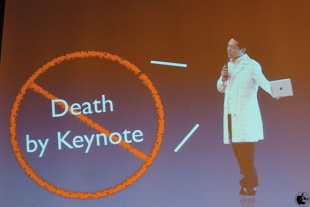 Death by Keynoteによって、最低限の機能だけで伝わるようにデザインを行った方が望ましいと語った。