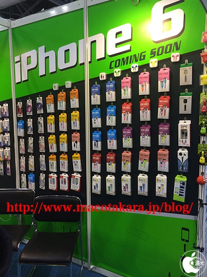 あるブースでは、非MFiライセンスLightningコネクタアクセサリか飾られたバックパネルに「iPhone 6 COMING SOON」とまで書いてありました。