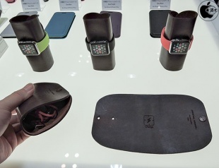 最高級イタリアンオイルレザーから切り出した1枚の革を丸めてApple Watch用スタンドにしたり、Lightningケーブルや充電アダプターを収納出来るApple Watchスタンドが展示されていました。
