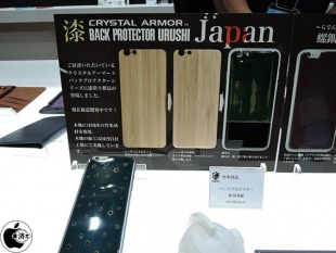 竹修成材をレザーカットし、新潟漆塗りを施したiPhone 6用バックプロテクター「クリスタルアーマー バックプロテクター 新潟漆器 for iPhone 6」も参考展示されていました。