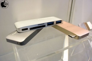 また、USB-C のアダプタ として、USB-Type-C のスルーと、SD/microSDカードのリーダ/ライター、USB3.1 2ポートを備えた小型アダプタを参考展示していました。