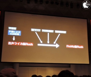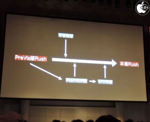 その後、音声ライカ版Rushに、画コンテ、PreViz制作、劇団演出部をはめ込み、PreViz版Rushを制作したと説明していました。