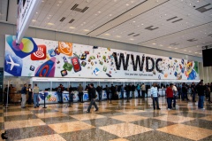 WWDC 2009の会場は iPhone app.のアイコンデザインで飾られています。