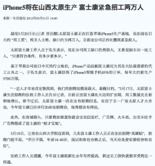 Foxconn、山西省太原市のiPhone 5用新工場のために2万人の従業員を緊急募集中?