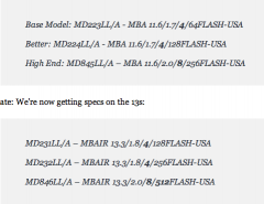 このリストには、Apple Retail Storeで販売されるUltimate仕様も含まれているようで、MacBook Air (13-inch, Mid 2012)モデルでは、512GBSSDモデルが用意されるようです。