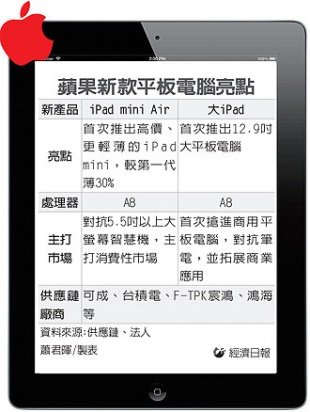 經濟日報が、Appleは、iPad mini Retinaを30%薄型化したiPad mini Airを2014年第三四半期末〜2014年第四四半期初旬に発売する可能性があると伝えています。