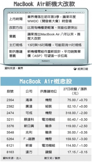 經濟日報が、サプライチェーンの情報として、Appleは、2016年第3四半期に、大幅な改良を施した新型MacBook Air を発売する計画のようだと伝えています。