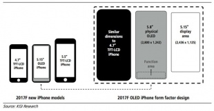 有機EL採用モデルは、ほぼベゼルレスデザインとなり、5.8インチディスプレイの画面下にファンクションエリアを搭載し、使用可能画面領域は5.15インチになる可能性があると予想しているそうです。