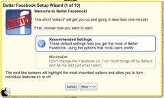 Better Facebook機能拡張をインストールしたら、Facebookサイトを開くと、初回時に設定ガイドが表示されます。