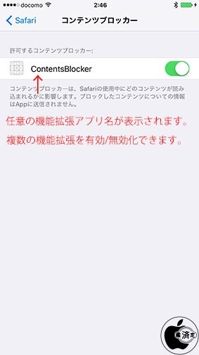このコンテンツブロッカー機能は、デベロッパー情報「Safari 9.0」の中で「Content Blocking Safari Extensions」として説明があり、iOS 9版、OS X El Capitan版のSafari 9向け機能拡張として提供されると説明されています。