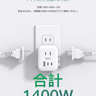 Amazon、AddtamのUSB充電ポート付き電源タップ「AD3JYC2」を999円で販売中