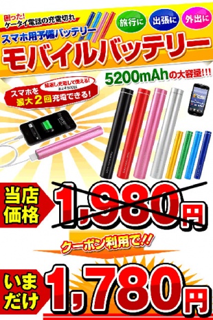 ホビナビが、5200mAhモバイルバッテリー「Power Station 5200」を1,980円で販売しています。