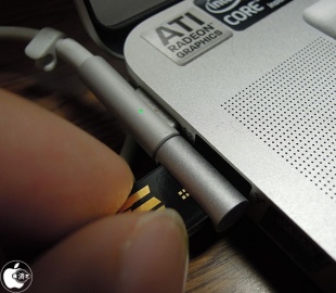 メモリ本体部分がUSBコネクタの半分程度の奥行きしかない「超小型」のUSBメモリで、MagSafe電源コネクタ形状に合わせたデザインがされています。