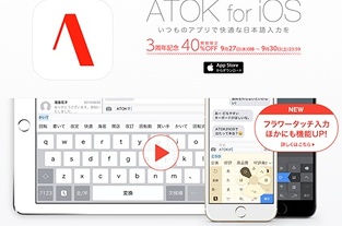 ジャストシステム、iPhone/iPad用日本語変換入力システム「ATOK for iOS」を40%オフで特価販売