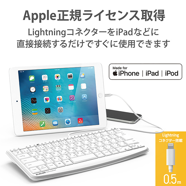 エレコムダイレクトショップ、Lightning接続静音ミニキーボード JIS配列「TK-LCM02」を308円で激安販売中